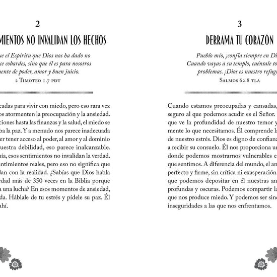 Su enfoque pastoral y femenino se refleja tanto en la portada como en el contenido, por lo que se sugiere la etiqueta Devocional para mujeres. Permite que estas páginas guíen tu corazón hacia la seguridad de Dios, renovando tu ánimo y cimentando tu vida sobre un fundamento de paz y esperanza.