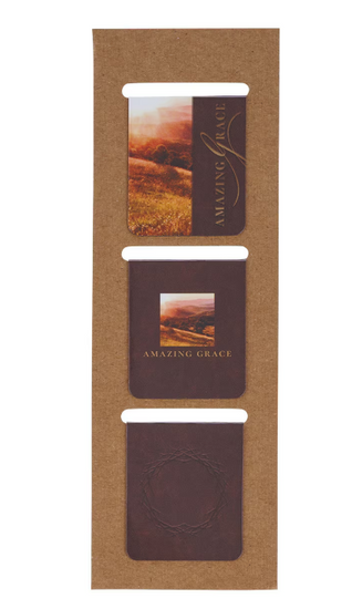 Marca tu lugar en tu libro con intención reflexiva al usar el Set de Marcadores Magnéticos Troquelados Amazing Grace: un trío de marcadores magnéticos cuidadosamente diseñados que llevan la Escritura y un espíritu de reflexión a cada lectura. Ya sea que estés profundizando en el estudio bíblico o disfrutando de una novela tranquila, estos marcadores ofrecen una manera significativa de pausar y regresar con propósito.El set troquelado contiene tres marcadores magnéticos, todos rectangulares y diseñados con un tema marrón intenso que incluye impresionantes paisajes fotográficos en tonos cálidos dorados.El primer marcador inspirador presenta un campo bañado por el sol, colinas ondulantes a la derecha y una banda marrón a la izquierda. El sentimiento se presenta en letras amarillas doradas sobre la banda marrón.Amazing GraceEl diseño inverso aparece en la parte posterior del marcador bíblico magnético.El frente del segundo marcador es marrón y presenta un verso de la Escritura en letras amarillas doradas.