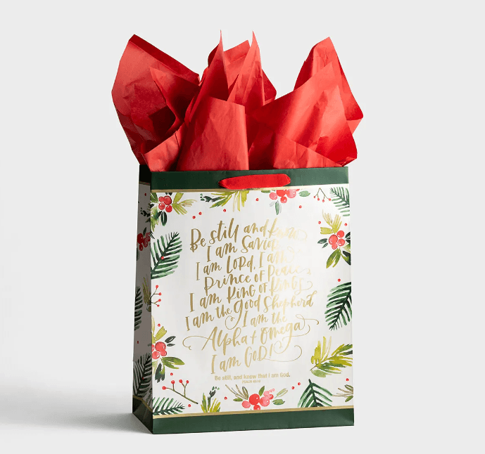 Be Still - Bolsa grande de regalo de Navidad con tisú