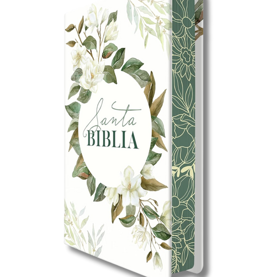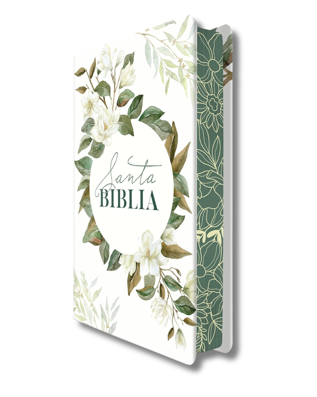 Biblia RVR 1960 letra grande tamaño manual, tapa dura con flores blancas y cantos pintados Reina Valera Revisada 1960