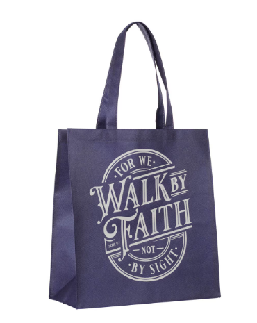 Bolsa :Walk By Faith Blue Reusable Non-woven Shopping Bag - 2 Corinthians 5:7