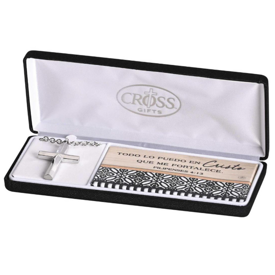 Collar con Cruz en Acero Inoxidable | Caja de Regalo Filipenses 4:13