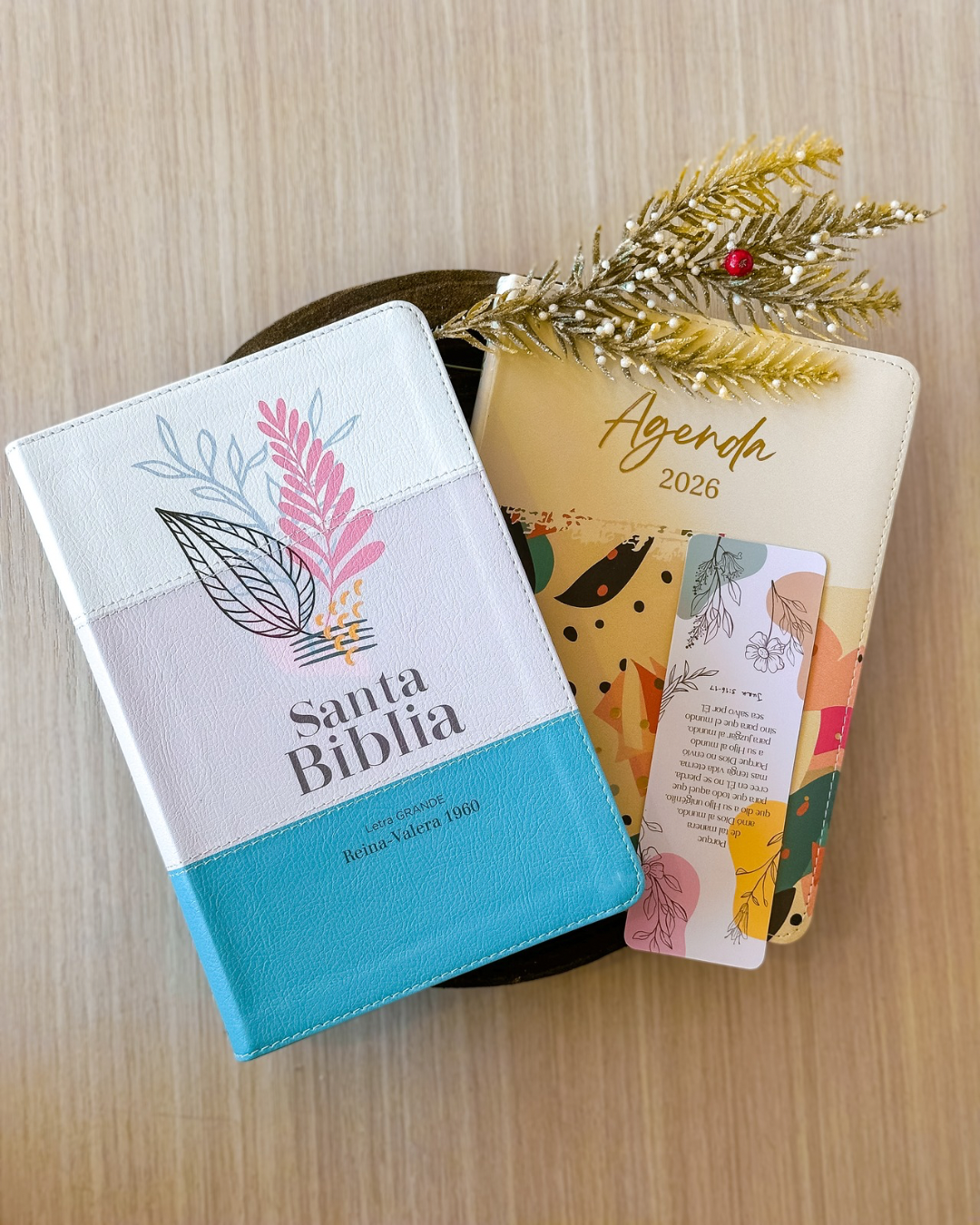 Este conjunto une lo práctico y lo espiritual, ofreciendo un refugio de paz y confianza en medio de la rutina. ¡Ideal para quienes buscan vivir su fe con serenidad, organizar su año con intención y profundizar en la Palabra mientras comparten esperanza con otros!