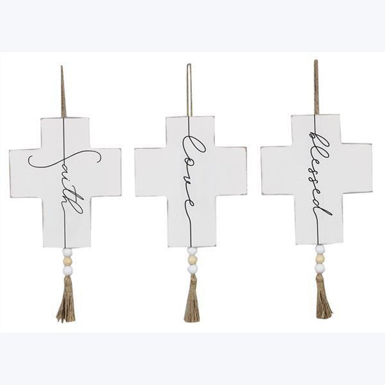 Cruz de pared de madera con adorno de cuentas de bendición y colgador de cuerda que viene en 3 surtidos