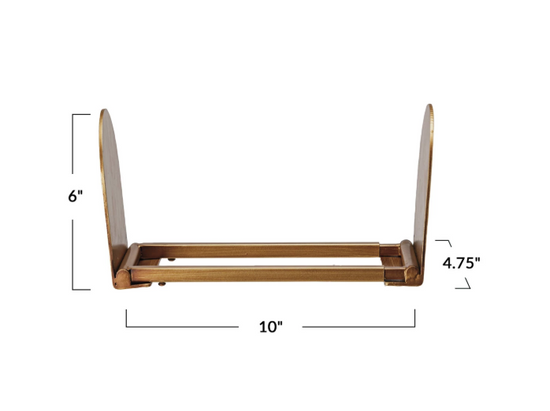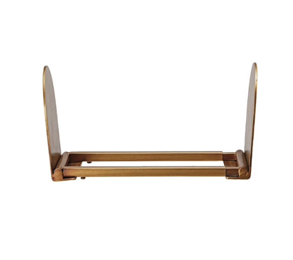 Estante para libros de metal ajustable, acabado dorado envejecido