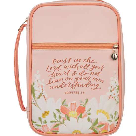 Funda de Biblia de Moda de Cuero Sintético Floral de Durazno Trust in the Lord " Confiar en el Señor "- Proverbios 3:5