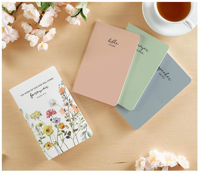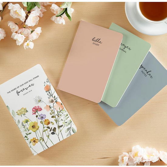 Journal Set - The Word of Our God | La Palabra de Nuestro Dios celebra la belleza de la fe con un versículo que inspira esperanza: «La Palabra de nuestro Dios permanecerá para siempre - Isaías 40:8». Cada diario se presenta con un delicado diseño floral que invita a detenerse, contemplar y abrir el corazón a la palabra viva que sostiene y acompaña.