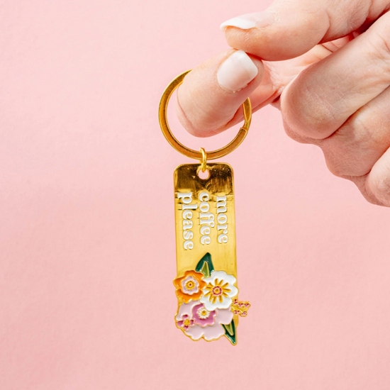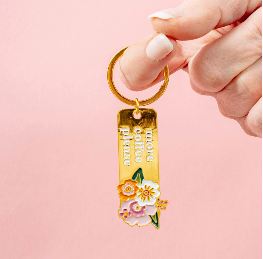 Llavero floral de esmalte More Coffee Please "más café por favor"