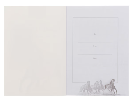 El Cuaderno Mediano Perseverancia Caballo Marrón captura el espíritu de la resistencia y el propósito con imágenes que evocan fuerza y movimiento hacia adelante. Centrado en Hebreos 12:1, este cuaderno te anima a seguir corriendo tu carrera, sin importar los obstáculos.La portada presenta una poderosa escena de un caballo galopando en un pastizal polvoriento, coronada con el mensaje en una hermosa tipografía negra con relieve dorado.Corramos con perseverancia la carrera que tenemos por delante.Hebreos 12:1La contraportada se aleja para mostrar una manada de caballos en plena carrera siguiendo al líder de la portada. Ya sea que estés escribiendo tus oraciones o tomando notas diarias, las 128 páginas rayadas ofrecen un amplio espacio, y cada una incluye un versículo bíblico para mantenerte anclado en la verdad. Su tamaño mediano lo hace ideal para mochilas o carpetas de estudio bíblico.