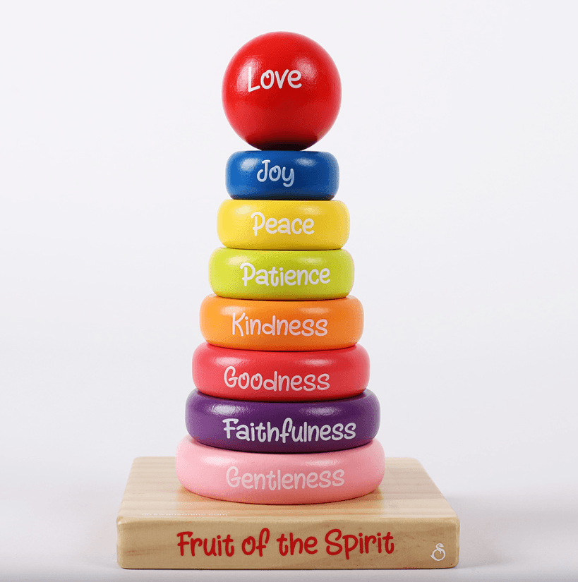 Rompecabezas de madera – Anillos apilables – Fruta del Espíritu