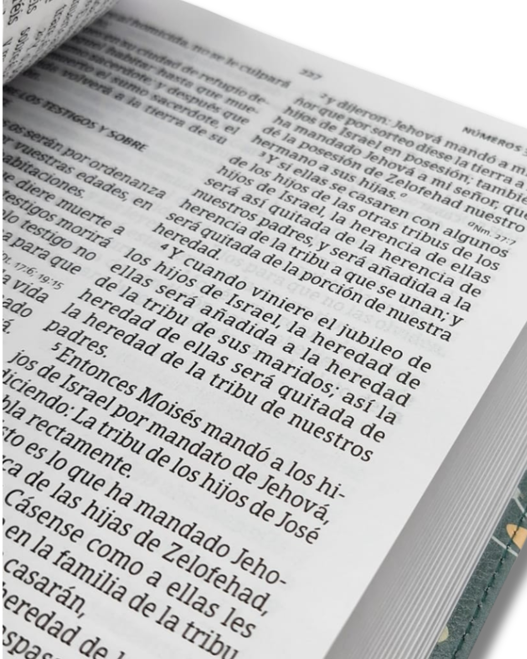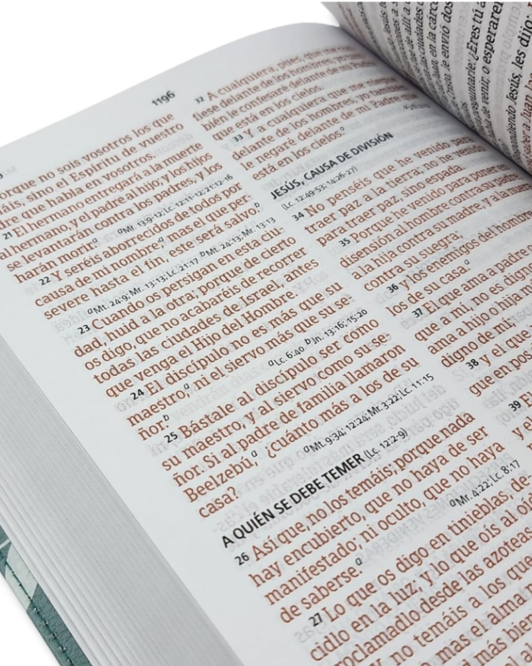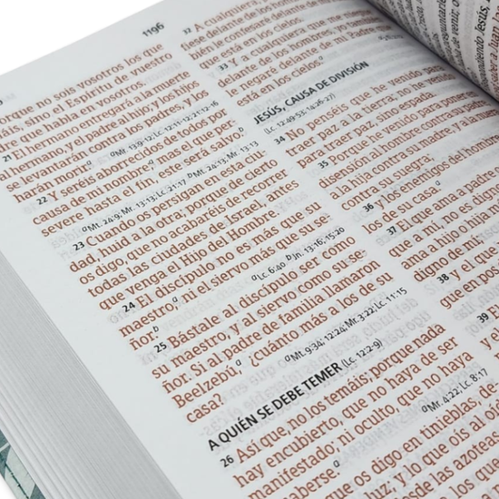 En sus contenidos encontrarás recursos que enriquecen el estudio y la devoción: referencias en cadena para conectar pasajes, introducciones y bosquejos de cada libro que orientan la lectura, armonía de los Evangelios y atributos de Jesús que profundizan en su persona. Además, incluye plan de lectura y mensajes de aliento para el diario vivir, así como mapas a todo color que sitúan históricamente las narrativas bíblicas, todo pensado para acercar la Escritura a la vida cotidiana.