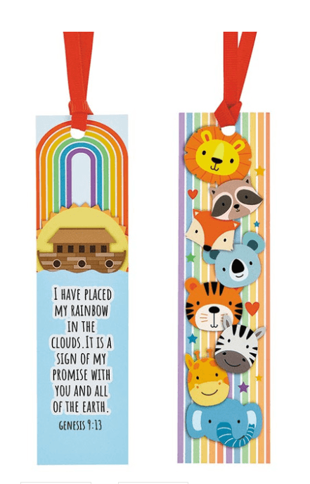 El marcapáginas presenta ilustraciones a doble cara, vibrantes y cautivadoras, que dan vida a la historia del Arca de Noé, haciéndola atractiva y fácil de entender para los niños.