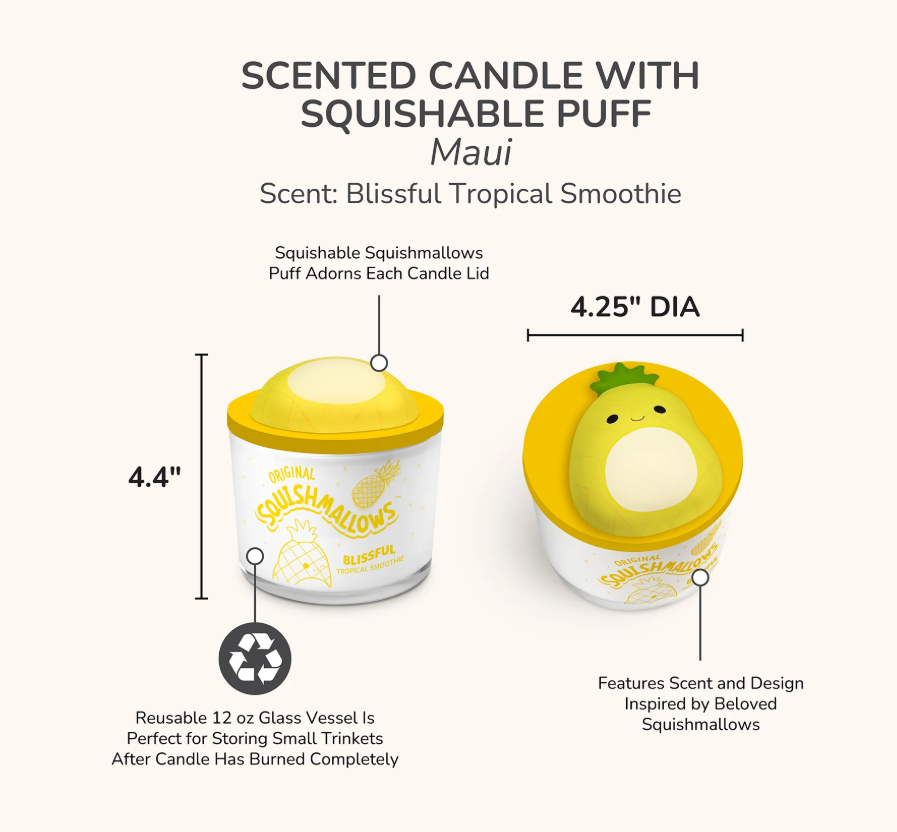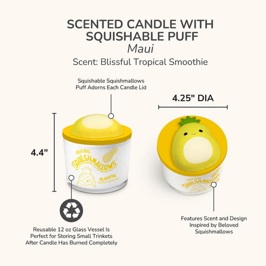 Squishmallows Maui Candle with Squishy Puff - Blissful Tropical Smoothie | vela