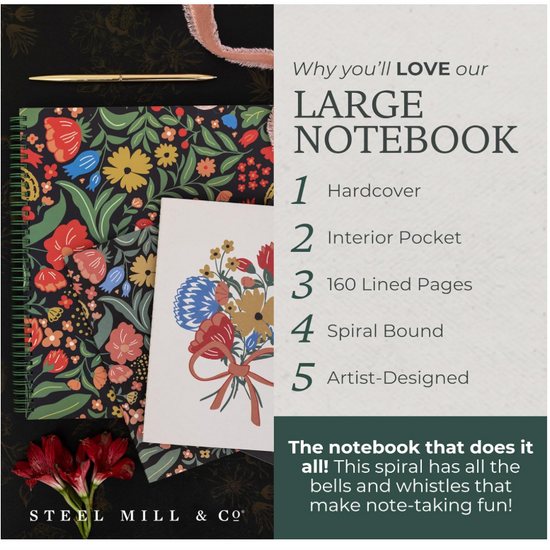 Steel Mill & Co - Cuaderno de espiral grande con rayas universitarias para diario