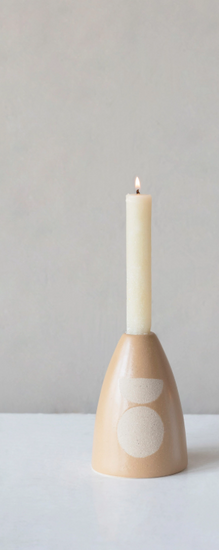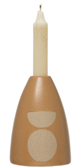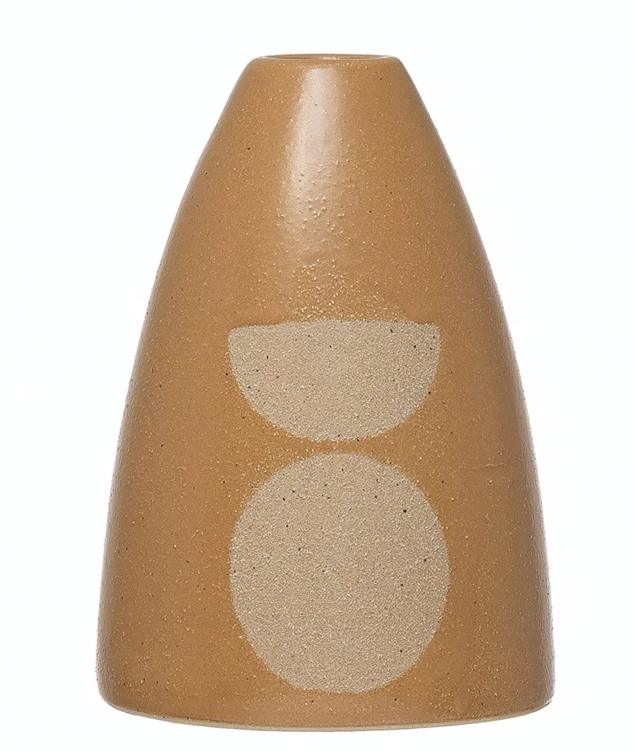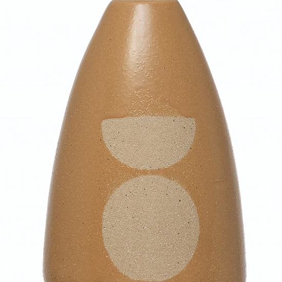 Material:Soporte cónico de gres con diseño circular, color tostado
