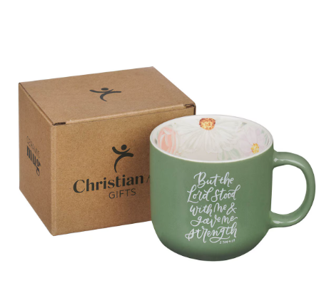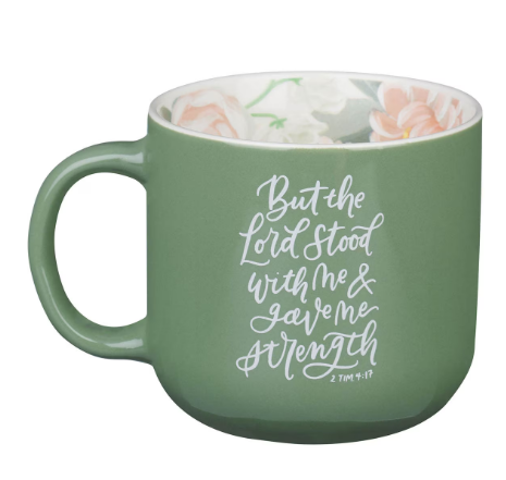 Taza The Lord Stood with Me Sage Green Floral Ceramic Coffee Mug – 2 Timothy 4:17