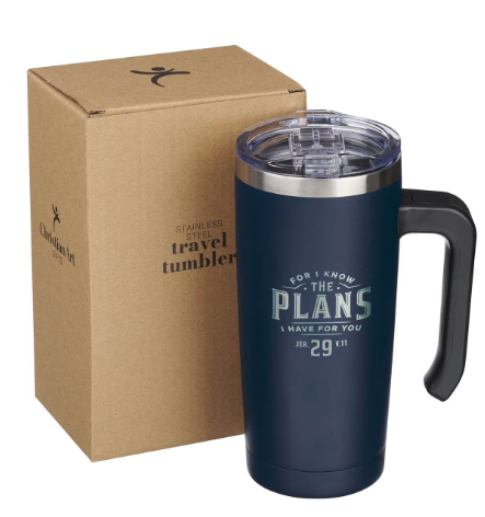 The Plans for You Navy Stainless Steel Travel Mug with Handle - Jeremiah 29:11"Planes para ti"