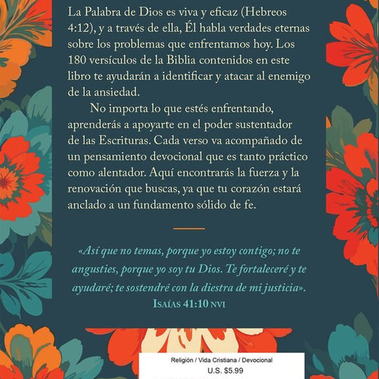 Escrito por Carey Scott, reúne versículos con breves reflexiones prácticas que enseñan a identificar las raíces del temor y a confrontarlas con la Palabra. Encontrarás pensamientos que nutren la fe, llaman a la oración y devuelven esperanza, convirtiendo cada lectura en un ancla para el alma, útil para el crecimiento espiritual, el ministerio y la evangelización.