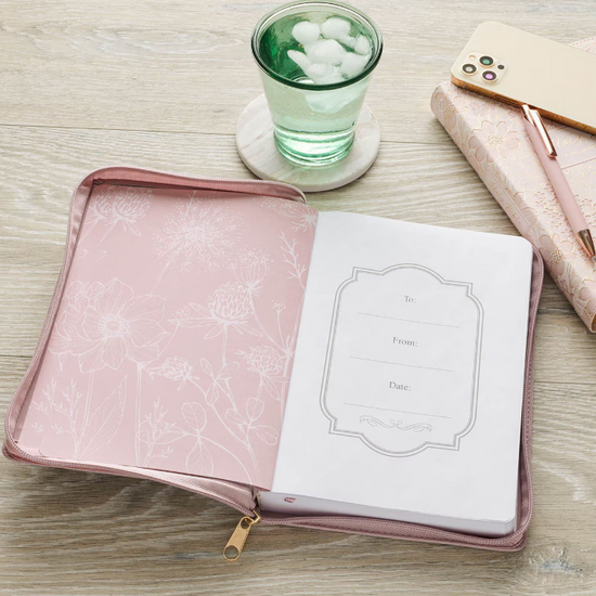 Always Be Joyful Dusty Mauve ofrece un espacio acogedor para registrar bendiciones, oraciones y motivos de gratitud. Su estilo evoca la tranquila confianza y el gozo que brotan al conocer a Cristo, invitando a que la gratitud tome forma en palabras. Estad siempre gozosos — 1 Tesalonicenses 5:16.