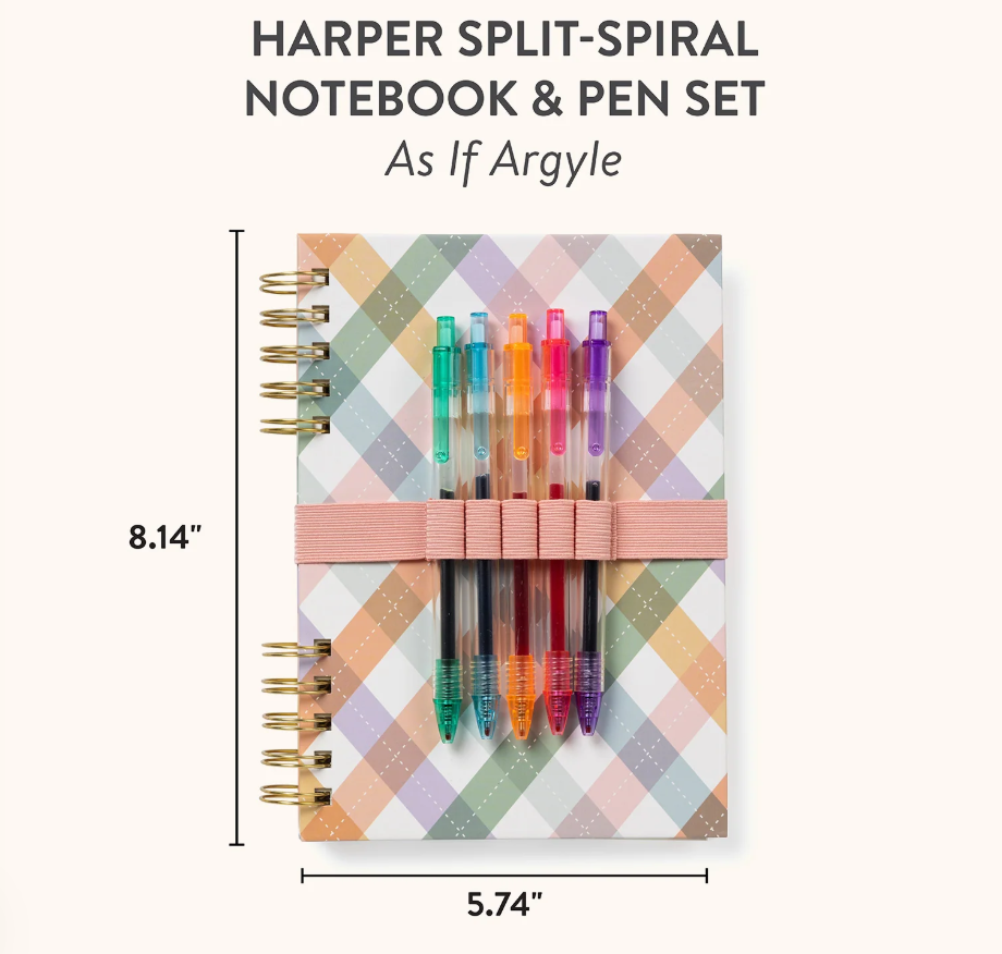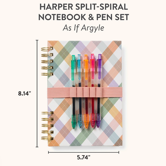 As If Argyle Harper Split-Spiral Notebook & Pen Set | Conjunto libreta y bolígrafo