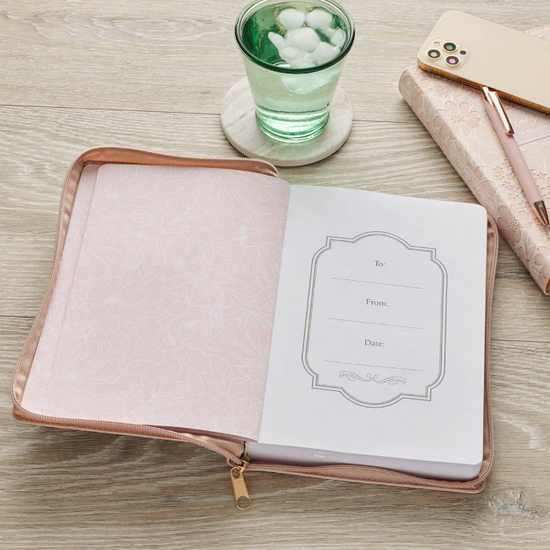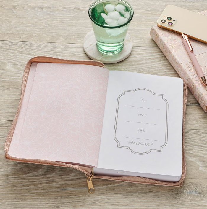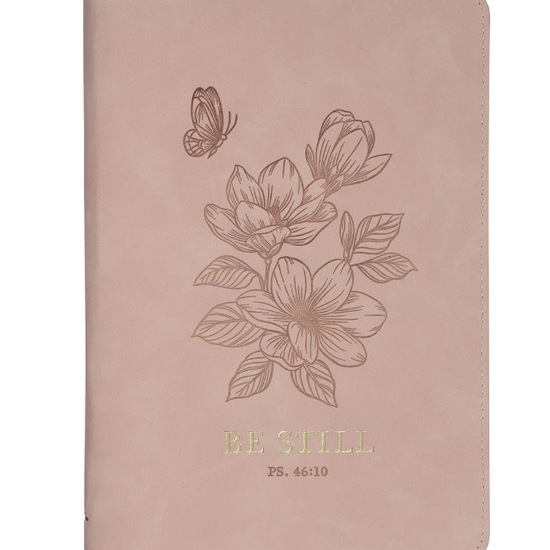 Cuaderno Be Still Rosa Floral con Cierre de Cremallera | Salmo 46:10