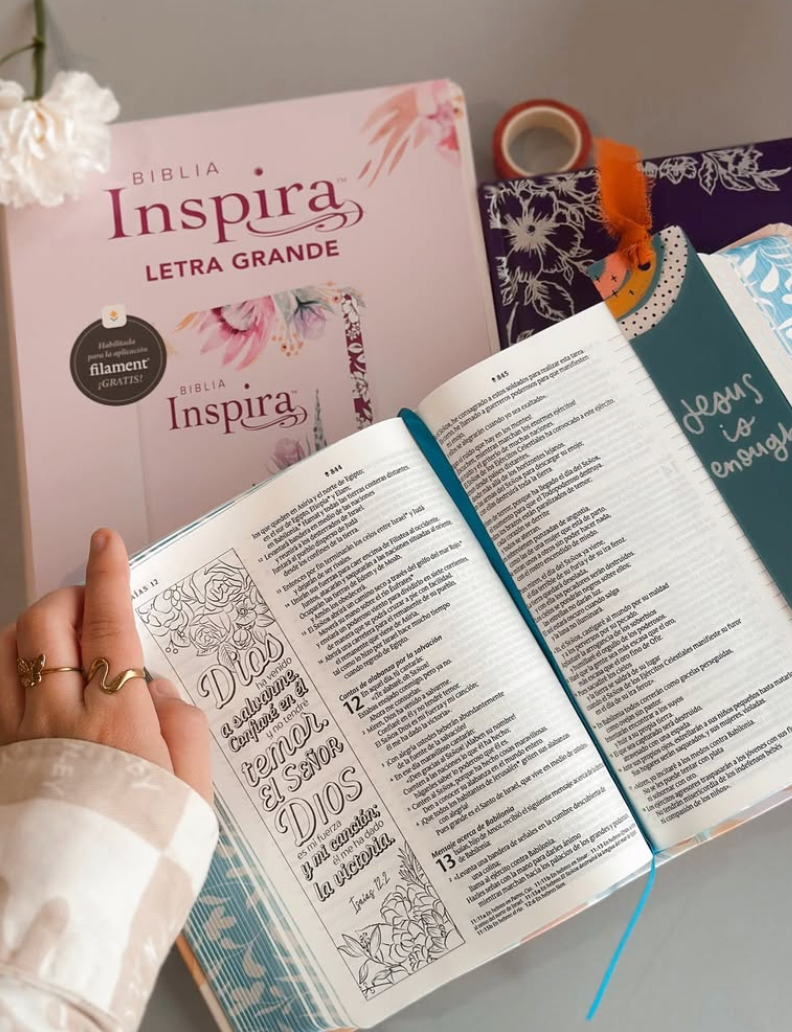 Biblia Inspira | Ilustrada NTV, Letra Grande - Primaveral Rosa + Filament