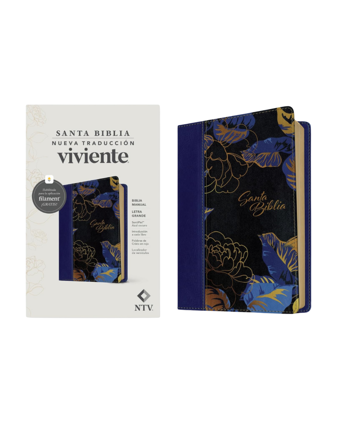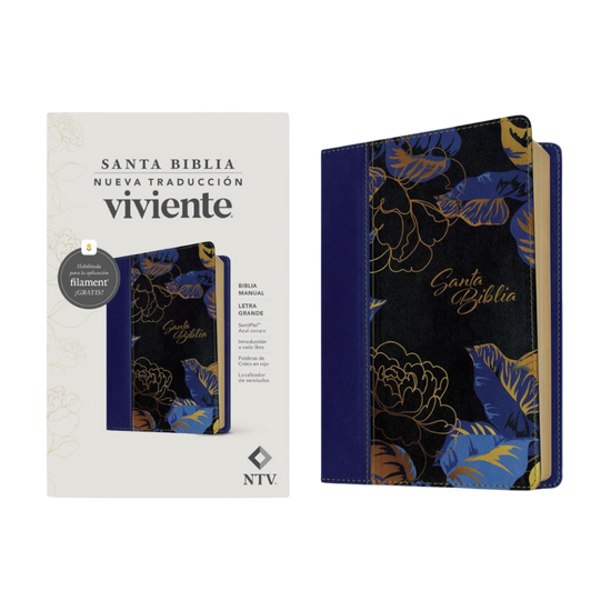 Biblia NTV | Manual SentiPiel Azul Oscuro Letra Grande y Palabras de Cristo en Rojo con Filament