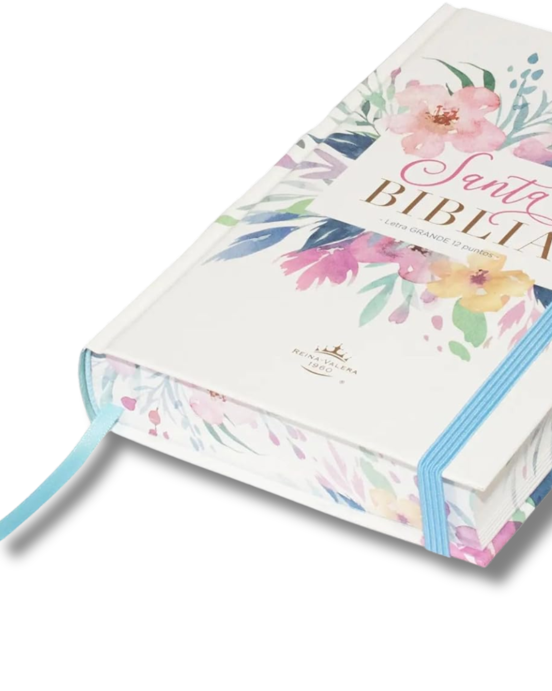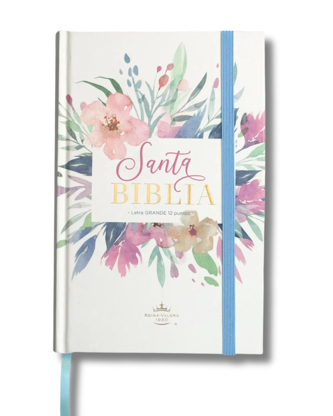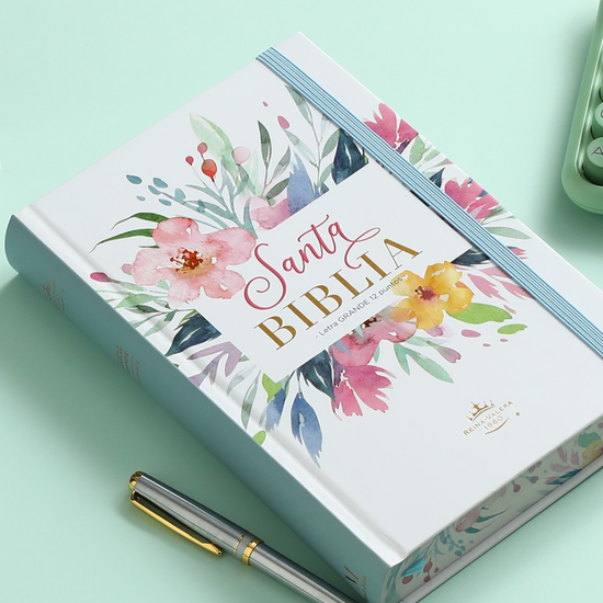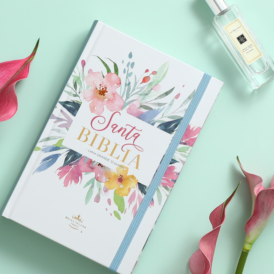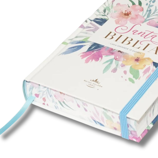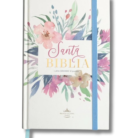 Biblia RVR 1960 | Letra Grande 12.5 pts Tamaño Manual Tapa Dura con Elástico Flores Azul