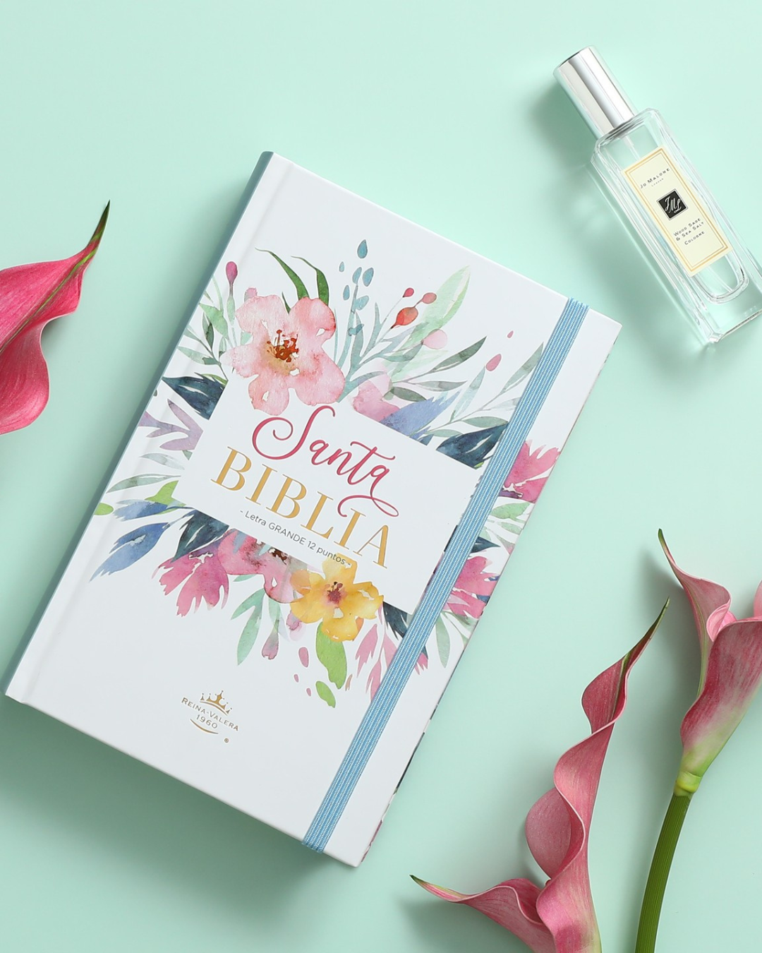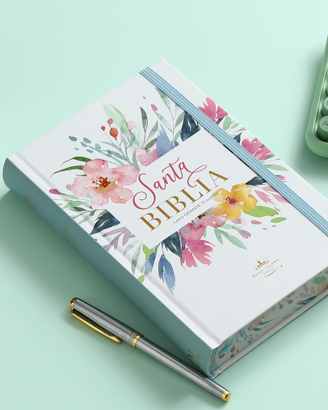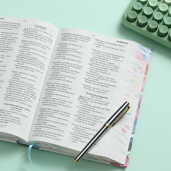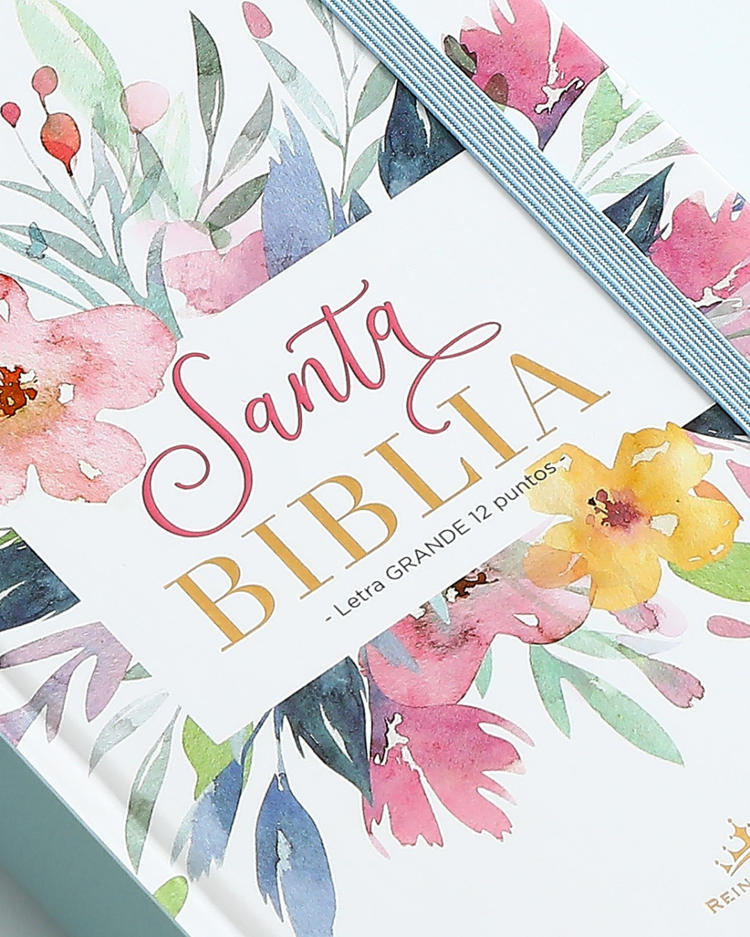 Biblia RVR 1960 | Letra Grande 12.5 pts Tamaño Manual Tapa Dura con Elástico Flores Azul