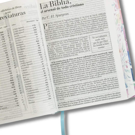 Biblia con: índice, sin cierre, a color.