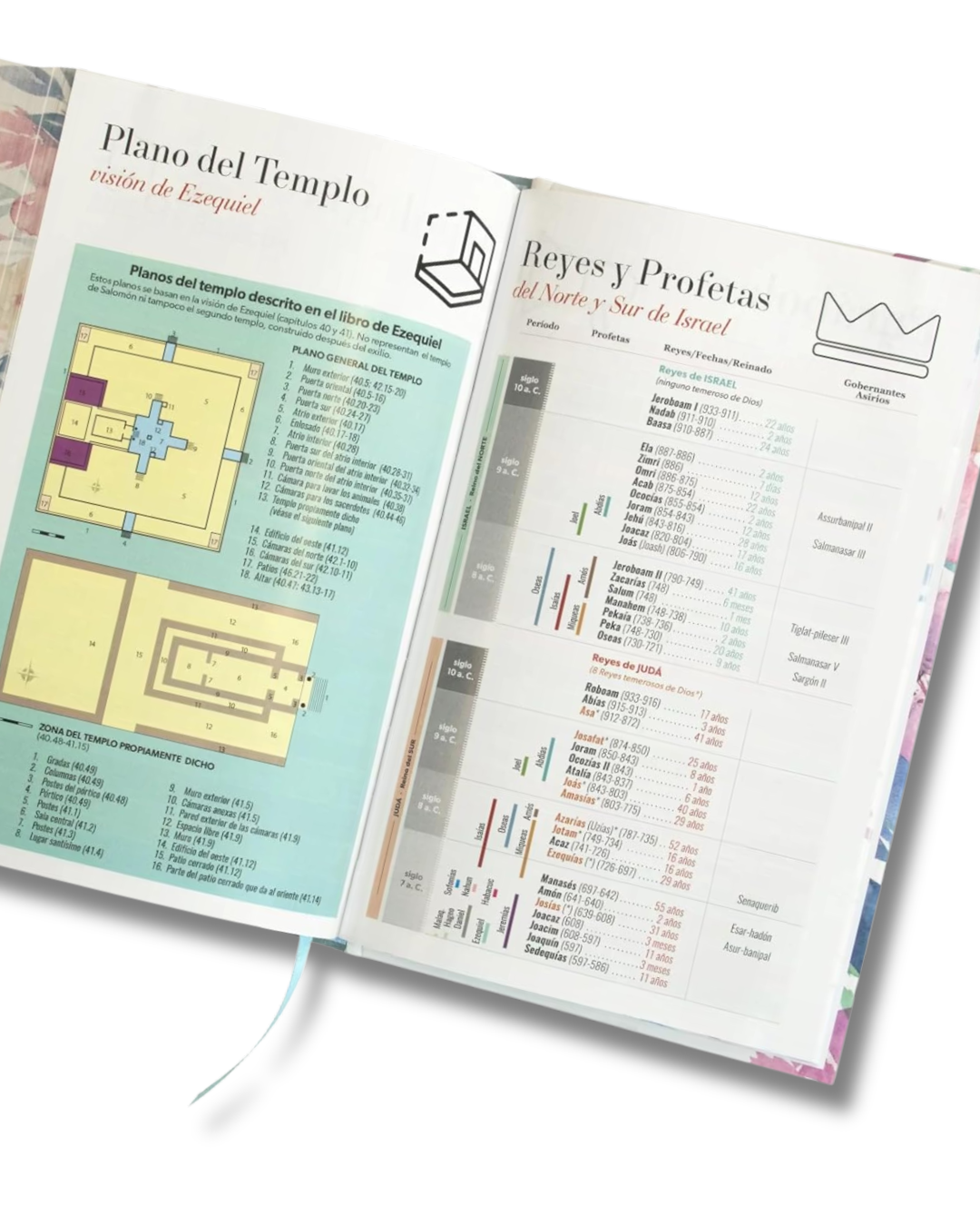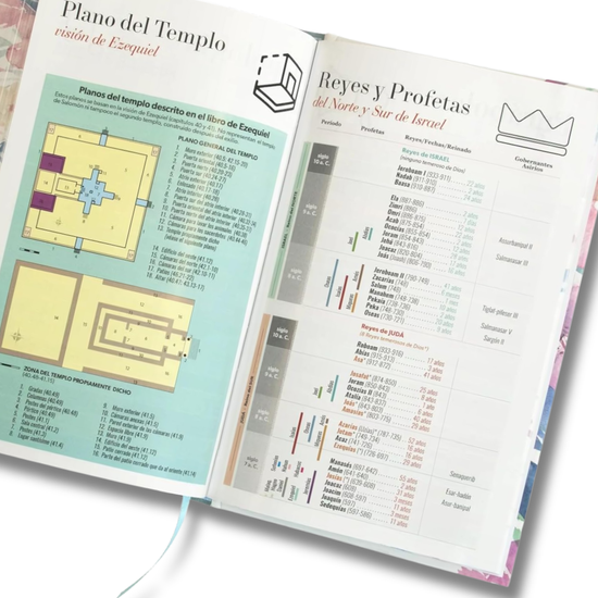 -Palabras de Jesús en rojo - Referencias cruzadas a pie de página. - Abreviaturas e Introducciones por C.H Spurgeon y J.C. Ryle - Concordancia de 120 páginas - Genealogía de Jesús/Fiestas Judías - Parábolas y Milagros de Jesús - Plan de salvación - Pasajes y versículos claves de la Biblia. - Plan de lectura Bíblica - Mapas de tiempos Bíblicos a todo color - 12 Mapas a todo color - Tipología de los salmos - Plano del templo - Cronología de reyes y profetas - Promesas de Dios
