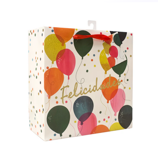 Haz que tus regalos destaquen con la bolsa de regalo grande Felidades. Su tamaño generoso y diseño atractivo permiten presentar tus obsequios con estilo y facilidad. Ideal para cualquier ocasión especial, esta bolsa ofrece una presentación elegante que hará sentir a quien la reciba una alegría única. Simplifica tus celebraciones con este práctico y hermoso accesorio para envolver.