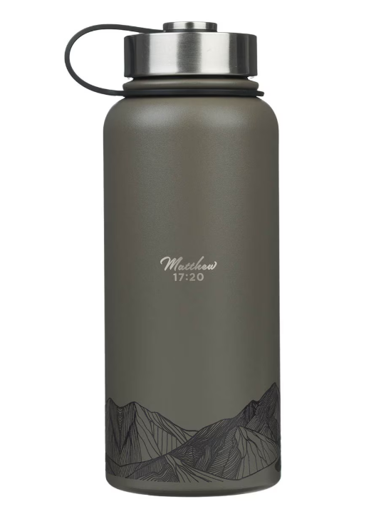 Botella de Acero Inoxidable Faith Dusty Brown | Mateo 17:20