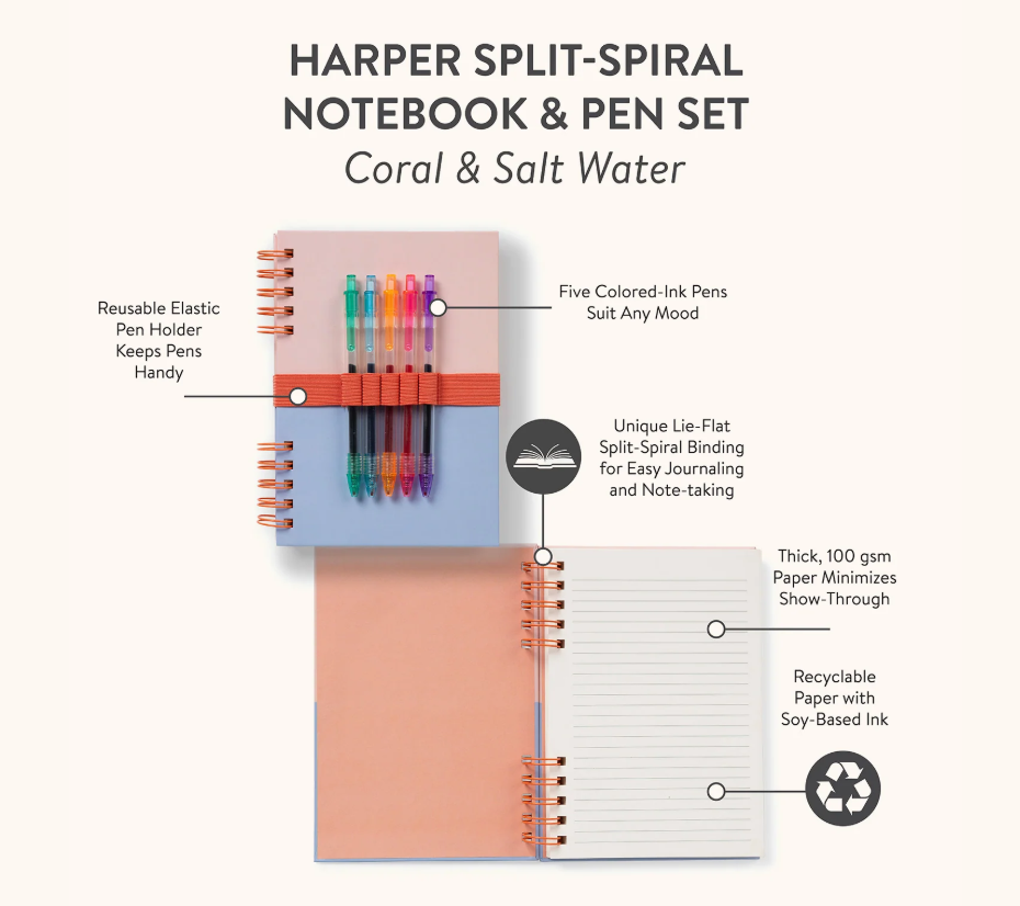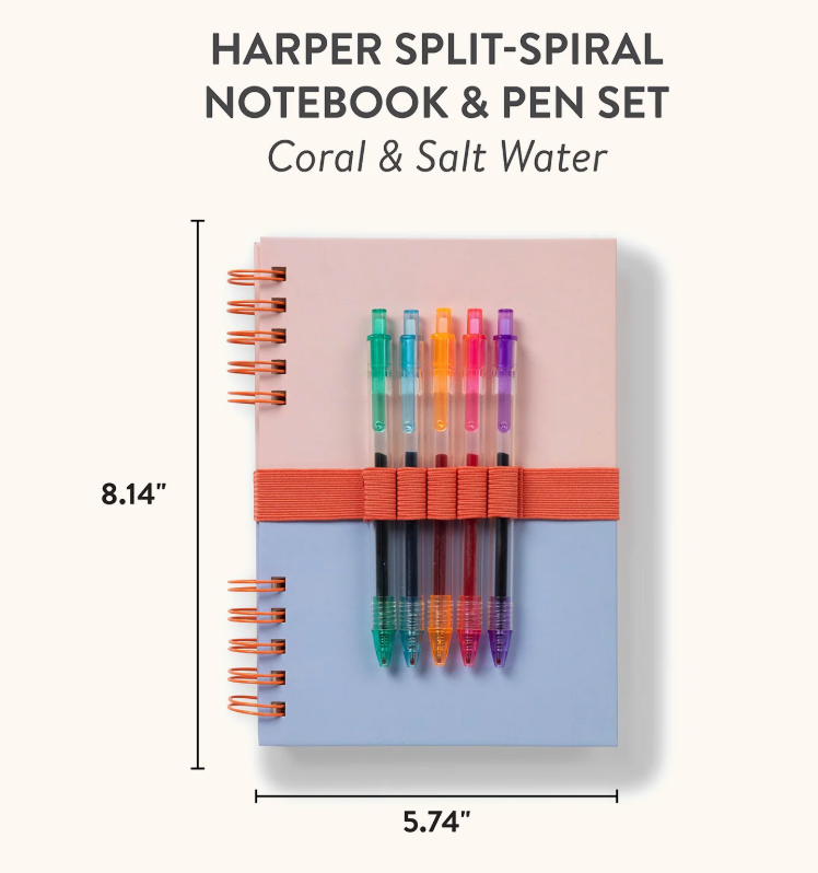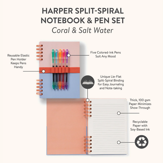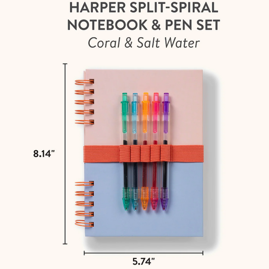 Coral & Salt Water Harper Split-Spiral Notebook & Pen Set | Conjunto libreta y bolígrafo