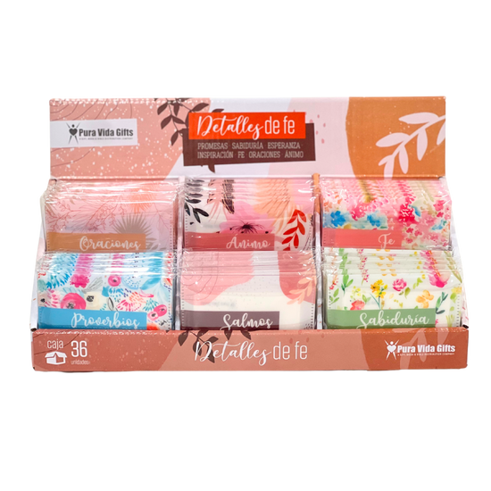 Detalles de Fe — Pastel reúne una delicada selección de tarjetas devocionales pensadas para acompañarte en momentos de reflexión y esperanza. Cada tarjeta está impregnada de versículos y mensajes que hablan al corazón, ofreciéndote consuelo, ánimo y una invitación a profundizar en la presencia de Dios en lo cotidiano.