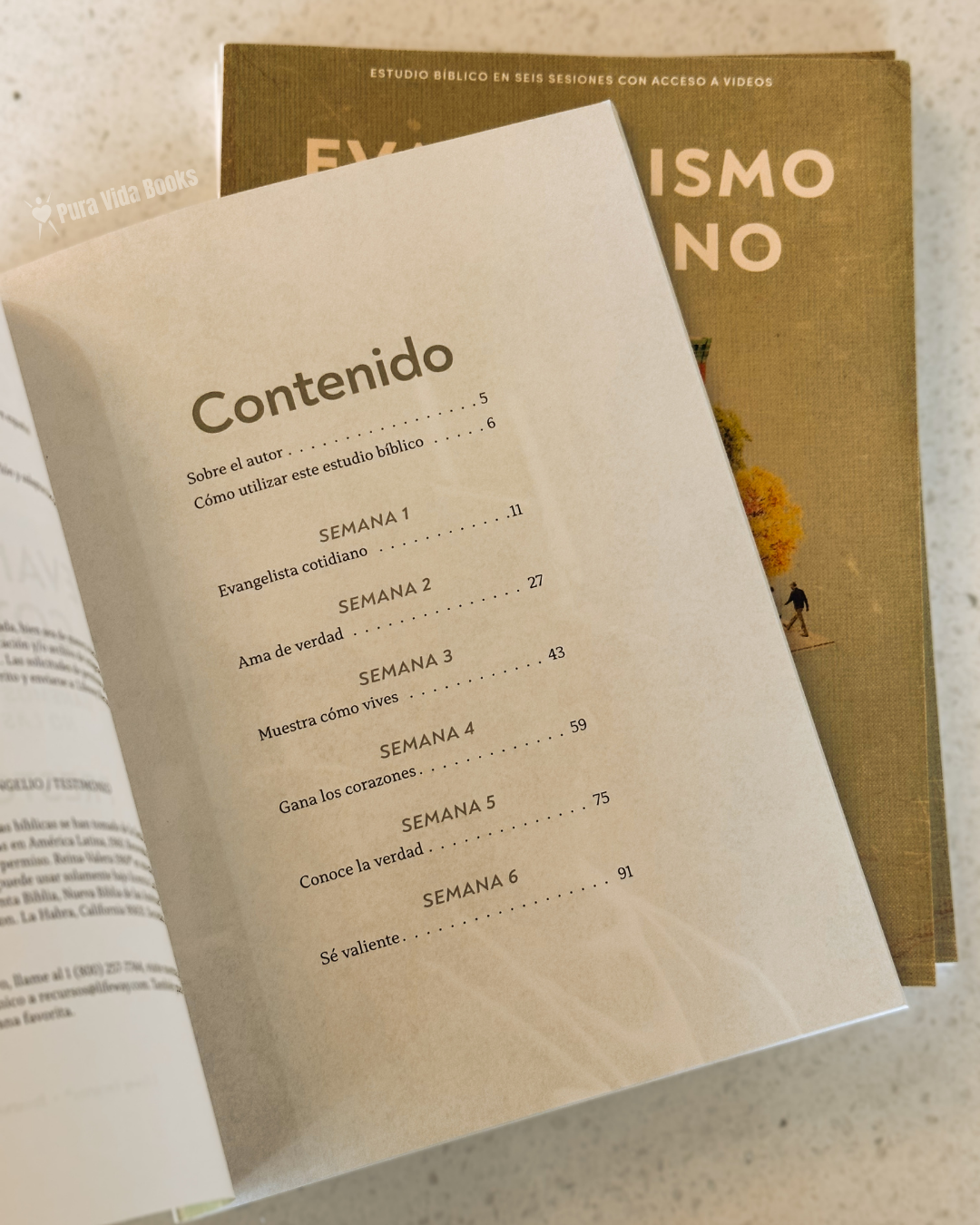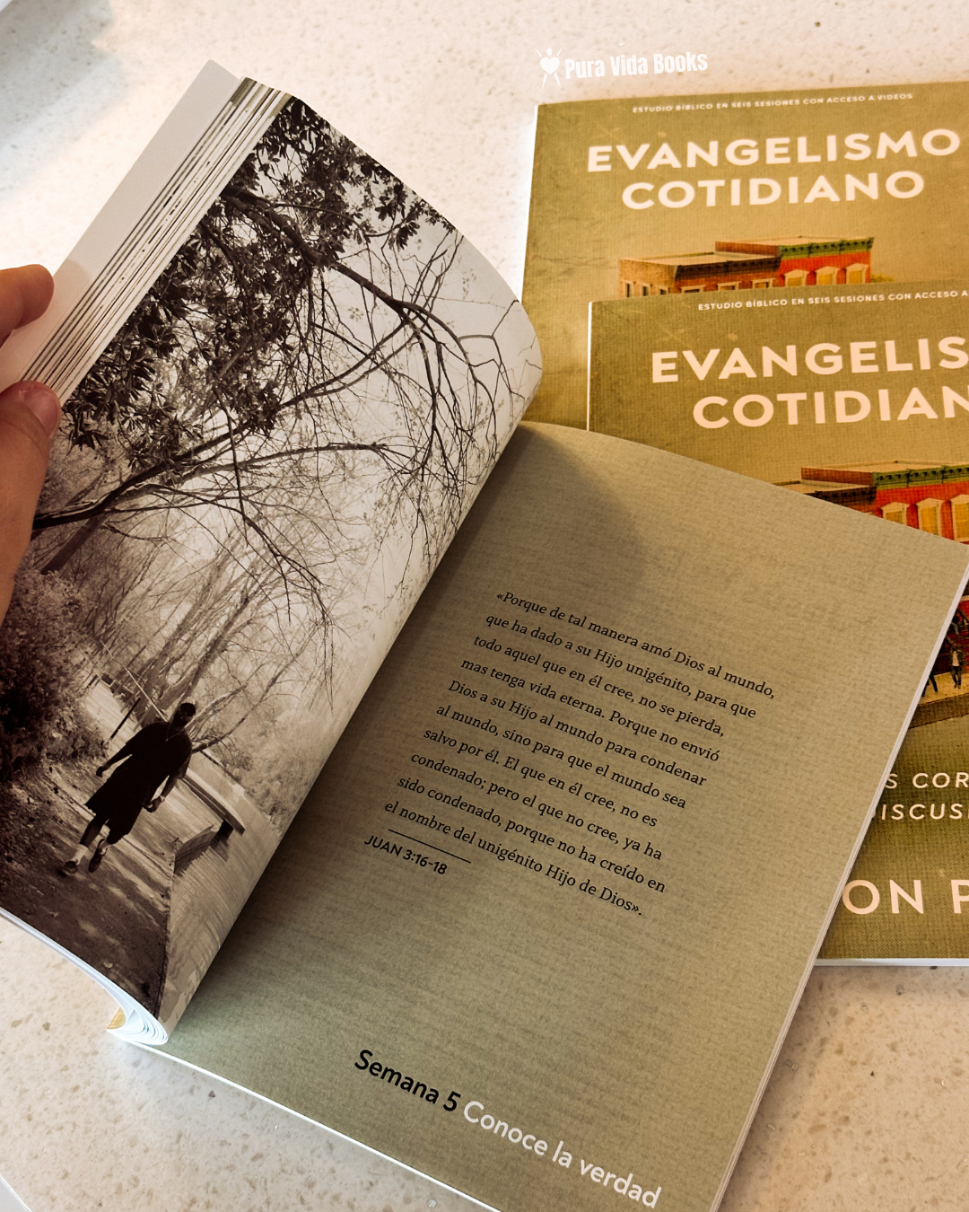 El libro de estudio bíblico Evangelismo Cotidiano con acceso a videos incluye contenido impreso para seis semanas de estudio, incluyendo sesiones grupales con preguntas útiles para la discusión, estudio personal entre sesiones grupales, Escritura aplicable, "Cómo usar este estudio" y consejos para liderar un grupo. Además, cada libro contiene códigos únicos que te permiten acceder a videos de enseñanza gratuitos para cada sesión.