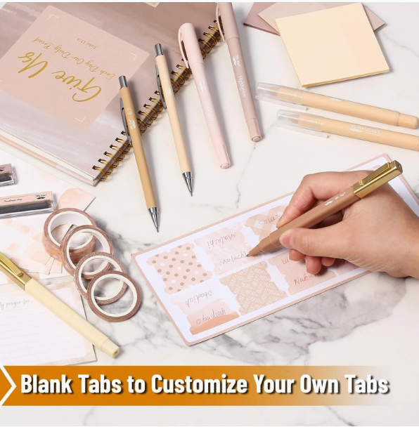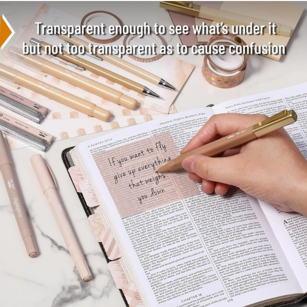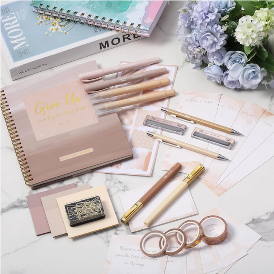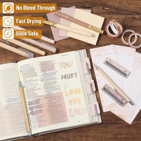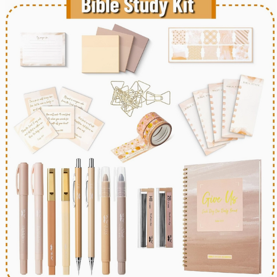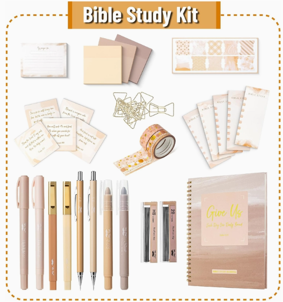 El kit de estudio bíblico Mr. Pen es un paquete todo en uno diseñado para mejorar tu experiencia de estudio de la Biblia, que incluye una variedad de herramientas como un diario de estudio con escrituras, instrumentos de escritura versátiles y accesorios coloridos. Está equipado con 2 lápices mecánicos para notas precisas, 2 resaltadores de gel suaves que no traspasan las páginas, 2 resaltadores vibrantes para pasajes clave y 2 bolígrafos finos para anotaciones detalladas. Personaliza tu Biblia con 4 rollos de washi tape decorativa, pestañas en blanco para marcar secciones y una selección de notas adhesivas para referencias rápidas o recordatorios. El kit incluye 2 minas de repuesto que aseguran un uso prolongado de los lápices mecánicos, agregando valor y sostenibilidad a tu rutina de estudio. Mejora tu aprendizaje con tarjetas de estudio bíblico cuidadosamente diseñadas para la reflexión y mantén todo en orden con elegantes clips, haciendo de este kit un regalo perfecto para estudiantes y académicos por igual.