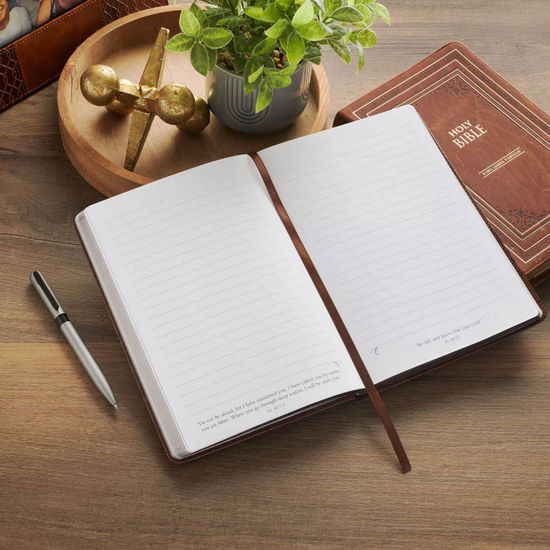 El cuaderno Hope in the Lord invita a encontrar refugio y claridad en medio del camino: su evocador paisaje de montaña despierta la contemplación y ofrece un lugar seguro para que él plasme pensamientos, oraciones y metas. Es un recordatorio constante de la promesa divina, “Los que esperan en el Señor renovarán sus fuerzas” (Isaías 40:31), que anima a confiar en la fidelidad de Dios día a día.