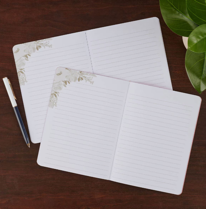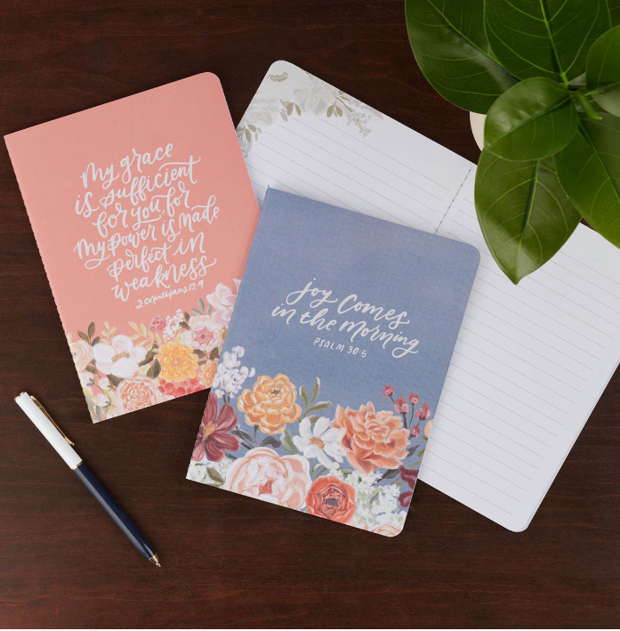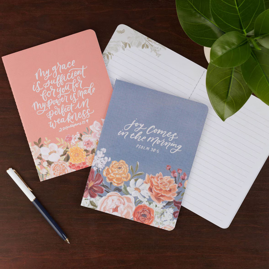 Bring a little encouragement to your day with the Joy and Grace Peach and Blue Floral Medium Notebook Set. These two pretty notebooks are perfect for capturing prayers, thoughts, and everyday notes. Allison Loveall's floral artwork and hand-lettered verses add a gentle, hopeful touch to your writing.
