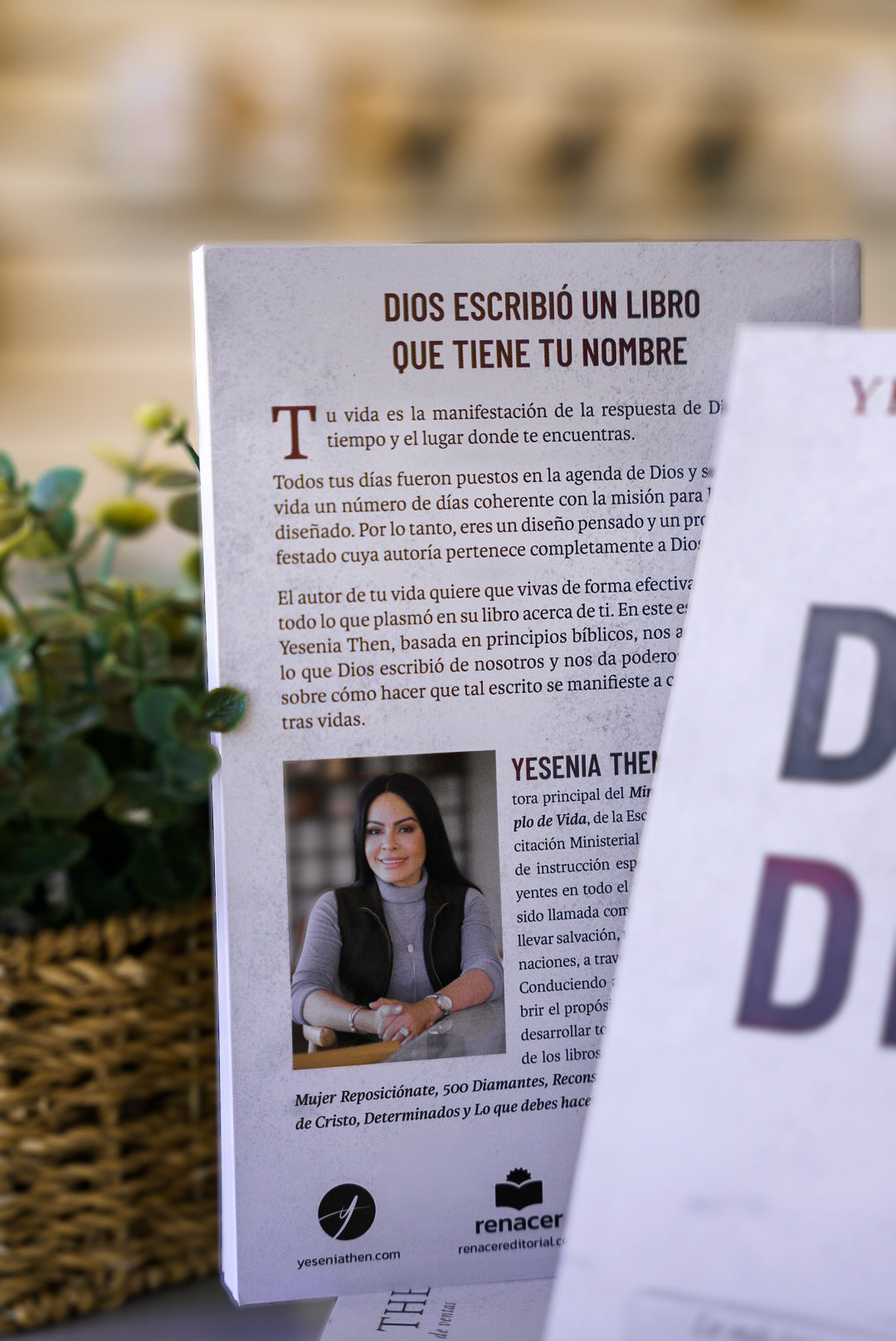El autor de tu vida quiere que vivas de forma efectiva y cumplas con todo lo que plasmó en su libro acerca de ti. En este escrito, la Pastora Yesenia Then, quien se basa en principios bíblicos, nos ayuda a en- tender lo que Dios escribió de nosotros y nos da poderosas instrucciones sobre cómo hacer que tal escrito se manifieste a cabalidad en nuestras vidas.