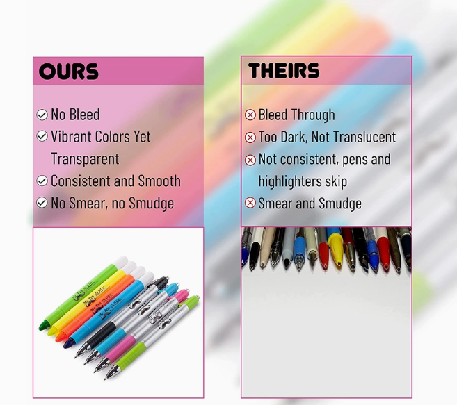 Resaltadores de gel con diseño de barra de gel retráctil, sin sangrado en ningún papel, incluyendo revistas y Biblias; sin manchar, suaves, no se secan si se dejan destapados, se pueden afilar para una punta más fina.Los bolígrafos trazan líneas suaves, sin saltos, y letras nítidas y consistentes.Perfecto para codificación por colores, journaling, memorizar tu Biblia u otros libros.