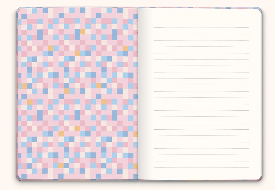 Libreta : Tapa blanda, 208 páginas con líneas. Encuadernación cosida Smyth. 5.8"w × 8.25"h. Papel de 100 gsm, libre de ácido y reciclable.