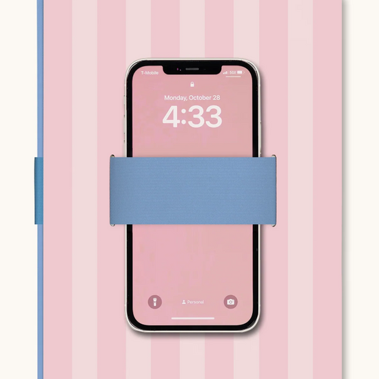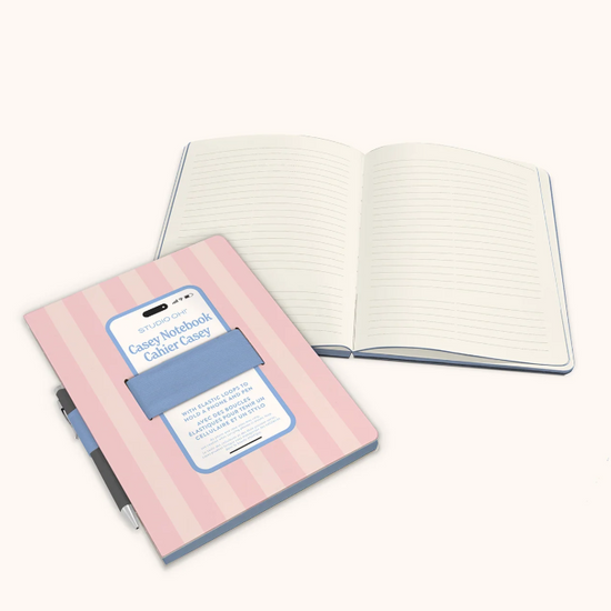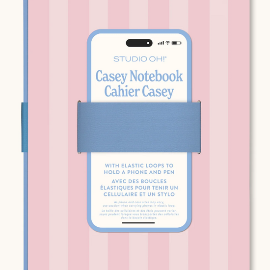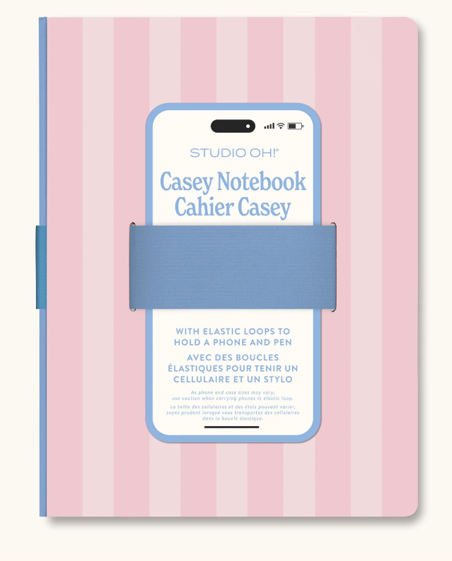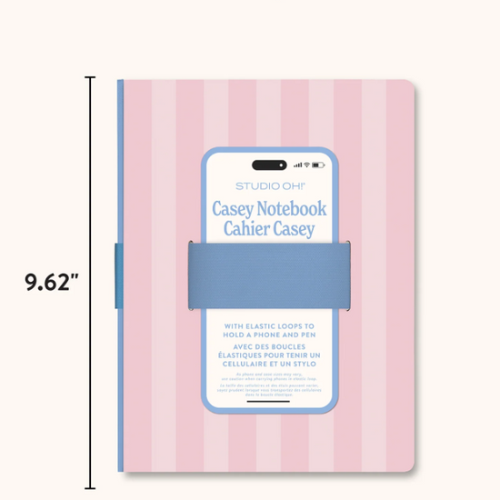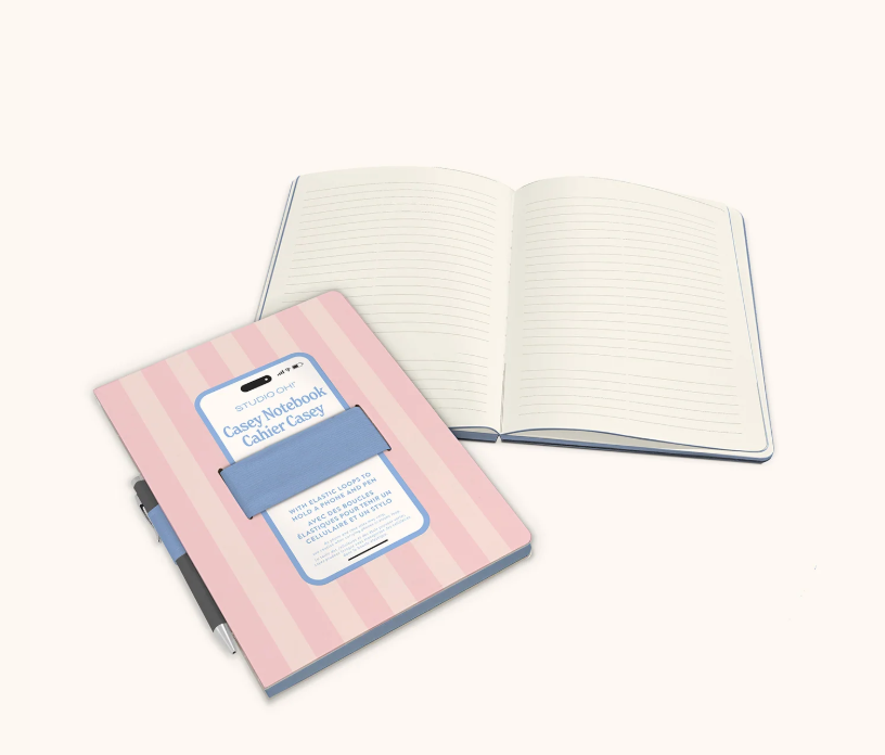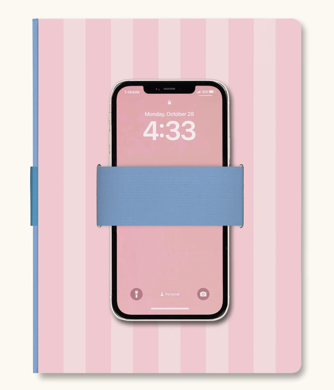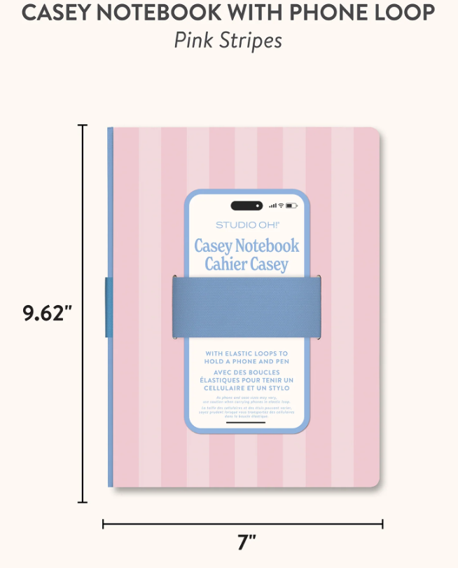 Pink Stripes Casey Notebook with Phone Loop | Libreta con sostenedor para bolígrafo y celular
