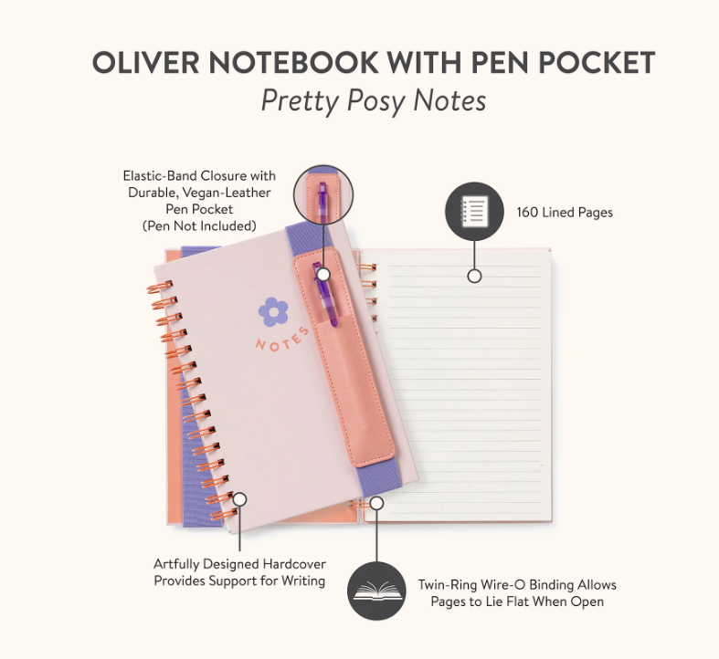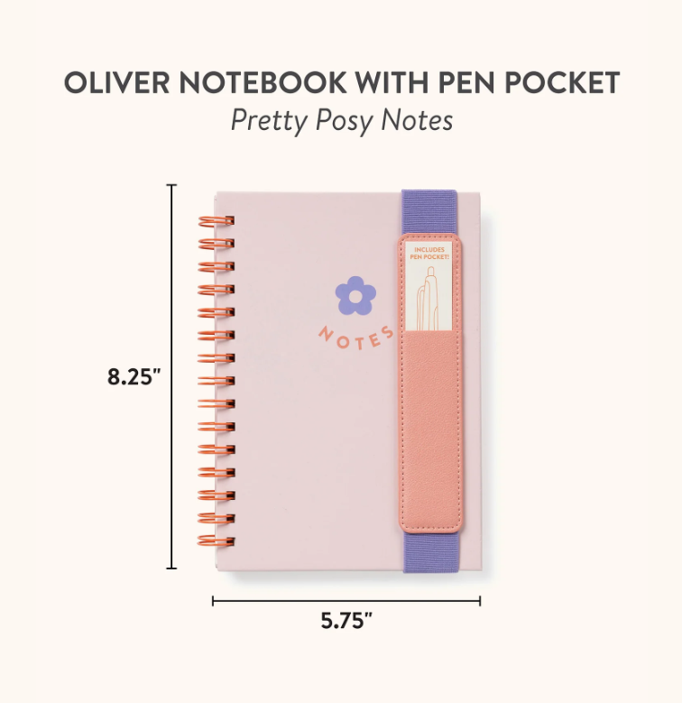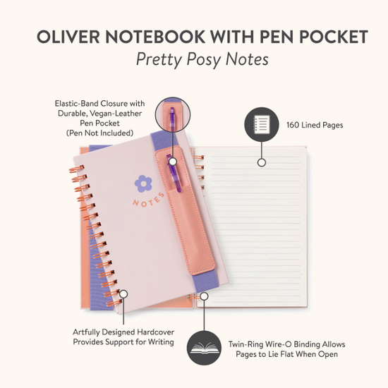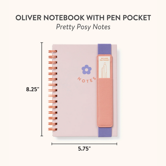 Pretty Posy Notes Oliver Notebook with Pen Pocket | Libreta con sostenedor para bolígrafo
