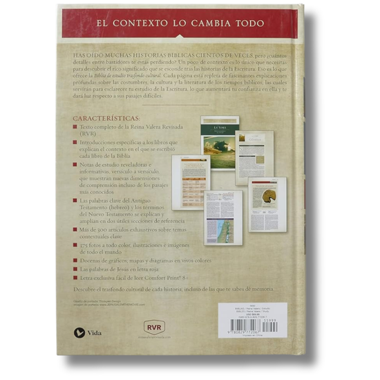 RVR, Biblia de estudio — Trasfondo cultural te invita a redescubrir la Escritura desde su entorno original, abriendo una ventana al mundo antiguo para que las historias y enseñanzas recuperen su profundidad y poder transformador. Es apropiado señalarla con la etiqueta Biblia de estudio — Trasfondo cultural, pues su propósito es iluminar los matices culturales y las claves que revelan el verdadero sentido del mensaje sagrado y acercar al lector a la intención original del texto.