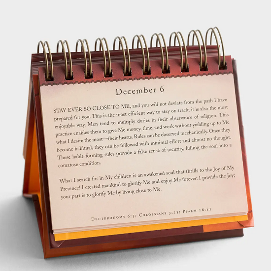 Inspira cada día del año con este calendario perpetuo de Sarah Young. Con los mismos mensajes inspiradores del libro devocional Jesús Llamando, este Iluminador del Día del Llamado de Jesús trae palabras de tranquilidad, consuelo y esperanza. Palabras que te hacen cada vez más consciente de la presencia de Dios, permitiéndote disfrutar de Su paz, Su alegría y Su amor eterno. Cada día está escrito como si Jesús mismo te estuviera hablando, porque Él lo está. ¿Lo oyes llamar?