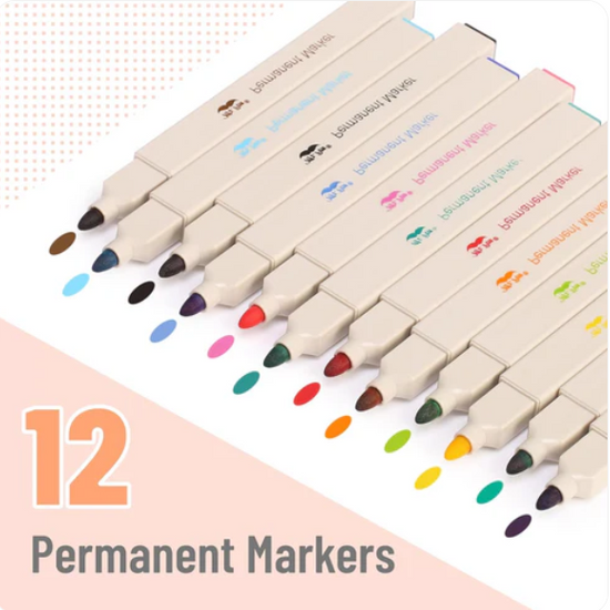 Set Permanent Markers, 12 Colors, Fine Point, Aesthetic Color