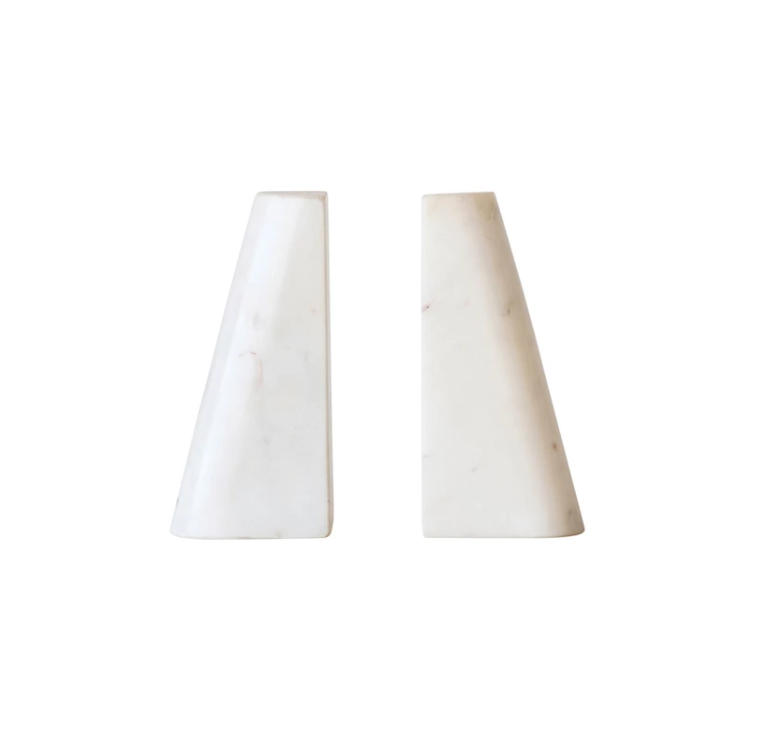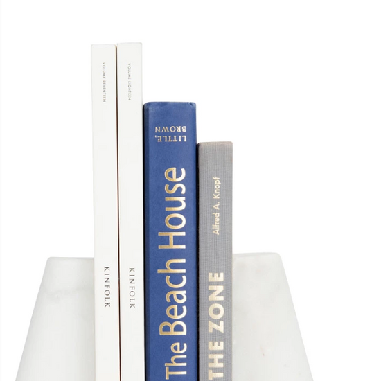 Separar los libros en grupos más pequeños y colocar sujetalibros a ambos lados es la forma de dar carácter a una estantería o mesa. Estos magníficos sujetalibros de mármol blanco también serán excelentes decoraciones para cualquier espacio plano. Gire la parte plana contra una pared y colóquela hacia los extremos de la repisa de la chimenea para que parezcan parte de la repisa misma.