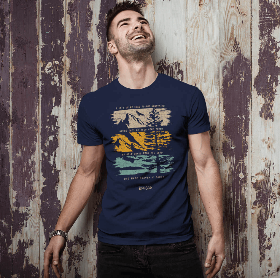 Alza tus ojos a las montañas con esta memorable camiseta «Lift My Eyes Up» de Kerusso® en azul marino. Nuestra ayuda viene del Señor, el mismísimo creador de las estrellas. Podemos confiar en Él para superar nuestros desafíos personales.
