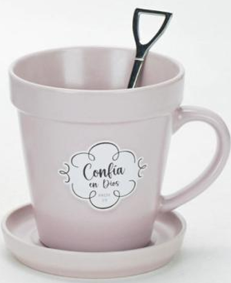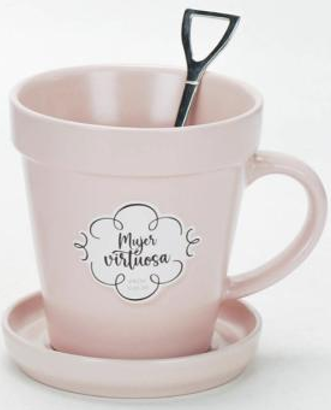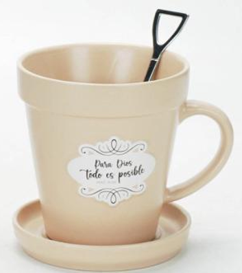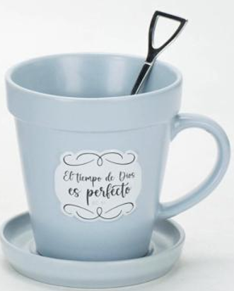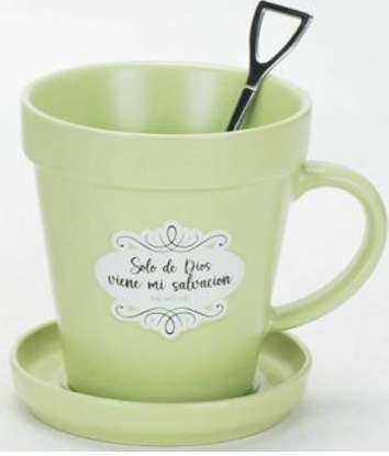Taza Maceta 14 oz con Cucharita y Plato | Regalo Devocional